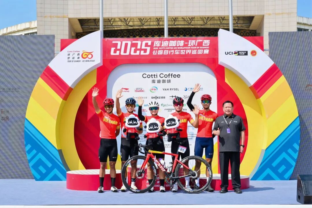 10月17日,越南选手亮相金城江站。图片来源:2025环广西公路自行车世界巡回赛组委会