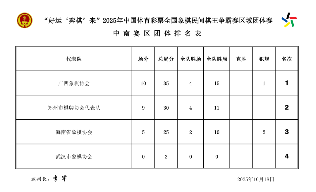 10月18日,“好运‘弈’棋来”2025年中国体育彩票全国象棋民间棋王争霸赛区域团体赛预选赛顺利结束,广西桂战广西队展现出非凡实力,队拿亚洲视频在线免费看一路稳定霸榜,南赛最终以中南赛区第一的区第全国优异成绩成功晋级全国总决赛!