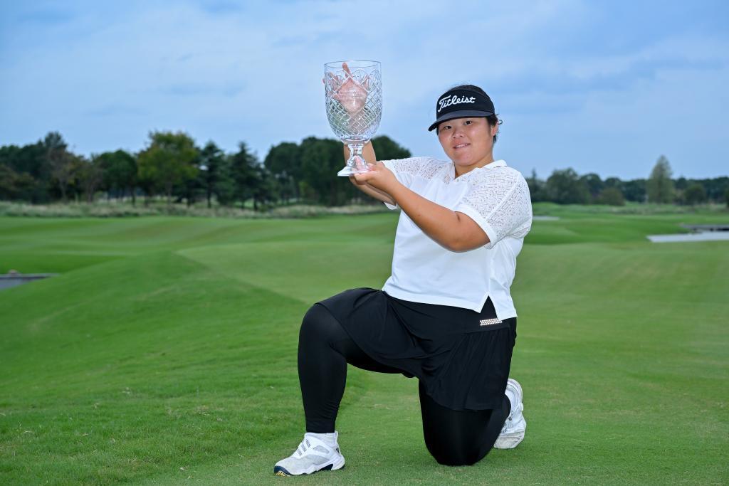 庞润芝夺冠后捧起冠军奖杯。图源:赛事组委会