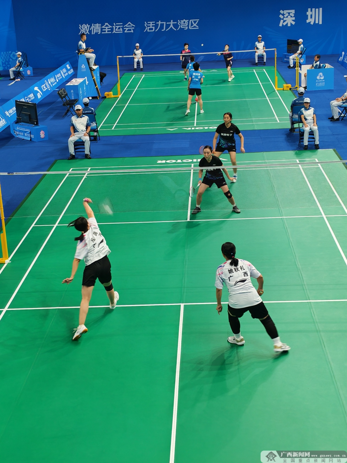 广西队女双队员应茵、业余运姚秋礼首战告捷,精英2比1战胜陕西代表队。出征