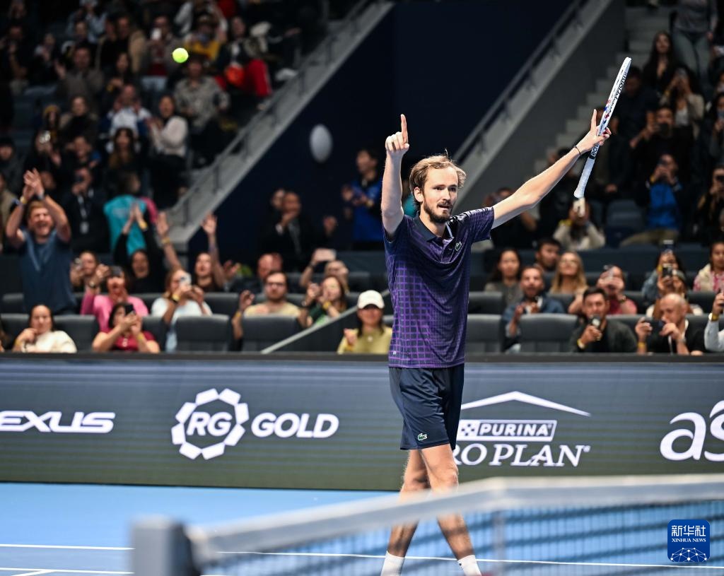 10月19日,网球梅德韦杰夫在比赛后庆祝。阿拉
