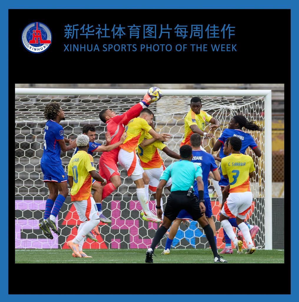 10月18日,新华哥伦比亚队门将加西亚(左四)在比赛中扑救。社体当日,育图无码人妻丰满熟妇区毛片18在智利圣地亚哥进行的周佳作2025国际足联U20男足世界杯三四名决赛中,哥伦比亚队1比0战胜法国队,新华获得季军。社体